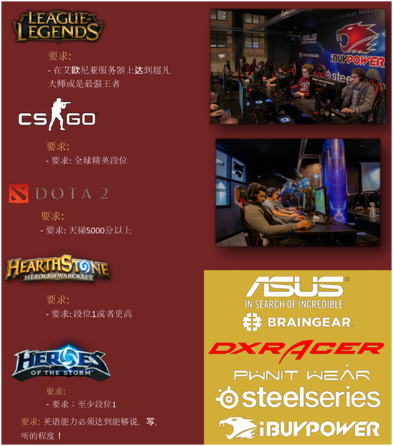 那么,怎么样才能加入RMU成为他们的选手呢?符合下列要求的同学们即可申请。