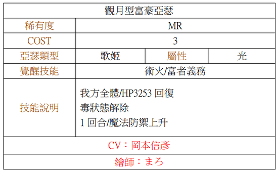 [光属性 歌姬 ★6(MR)观月型富豪亚瑟]