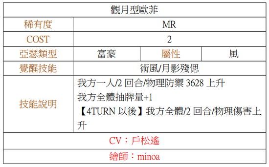 [风属性 富豪 ★6(MR)观月型欧菲]