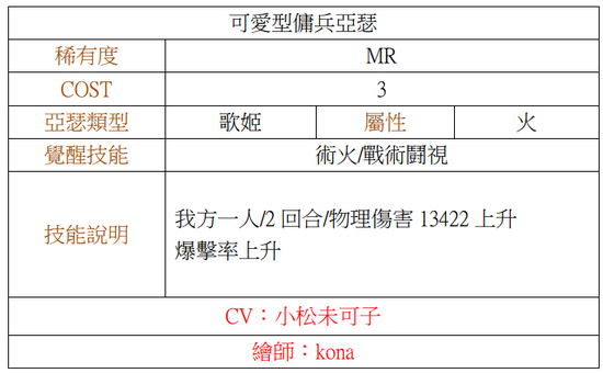 [火属性 歌姬 ★6(MR)可爱型佣兵亚瑟]