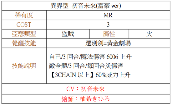 [火属性 盗贼 ★6(MR)异界型 初音未来(富豪ver)]
