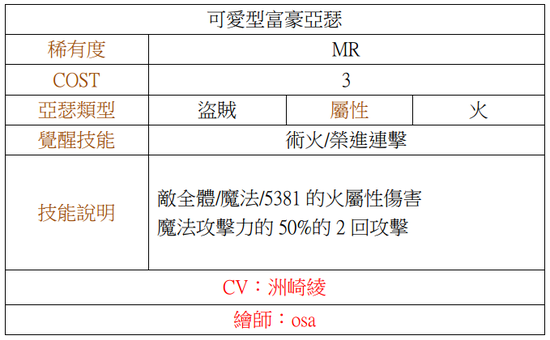 [火属性 盗贼 ★6(MR)可爱型富豪亚瑟]