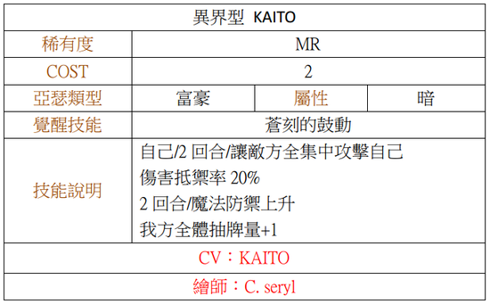 [暗属性 富豪 ★6(MR)异界型 KAITO]
