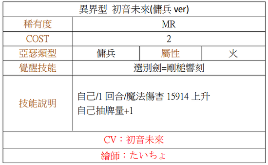 [火属性 佣兵 ★6(MR)异界型 初音未来(佣兵ver)]