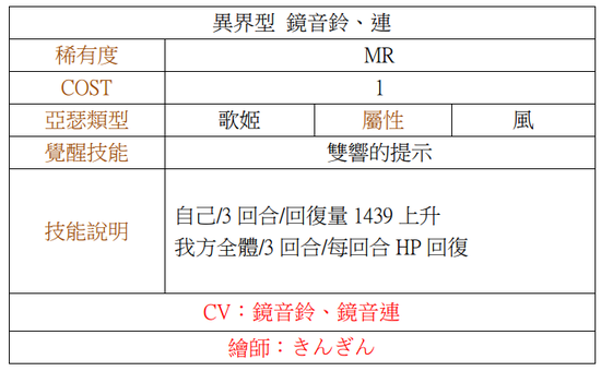 [风属性 歌姬 ★6(MR)异界型 镜音铃、连]