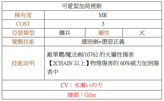 [火属性 佣兵 ★6(MR)可爱型加荷里斯]