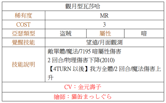 [暗属性 盗贼 ★6(MR)观月型瓦莎哈]