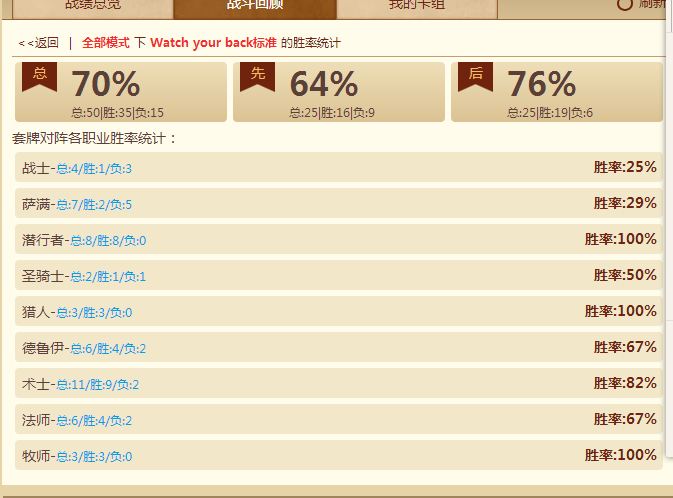 以上所有对抗,都是按卡组思路的打法来打,低费法术清场,同时站生物,配合解场,压场,蹭血,磨血量,斩杀。