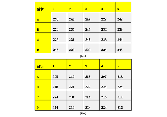 由上两表可得平均值: