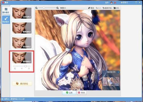 第一张图片上可以清楚看到很多锯齿,然后点击[磨皮]