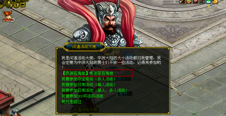 首先,我们从天墉城的问道活动大使处进入百鬼地。