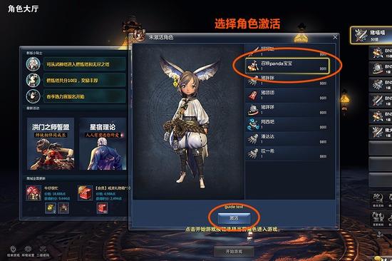 首次进入游戏时所有角色将存放于角色候选栏内,需点击激活才能将角色移动至角色登录列表。