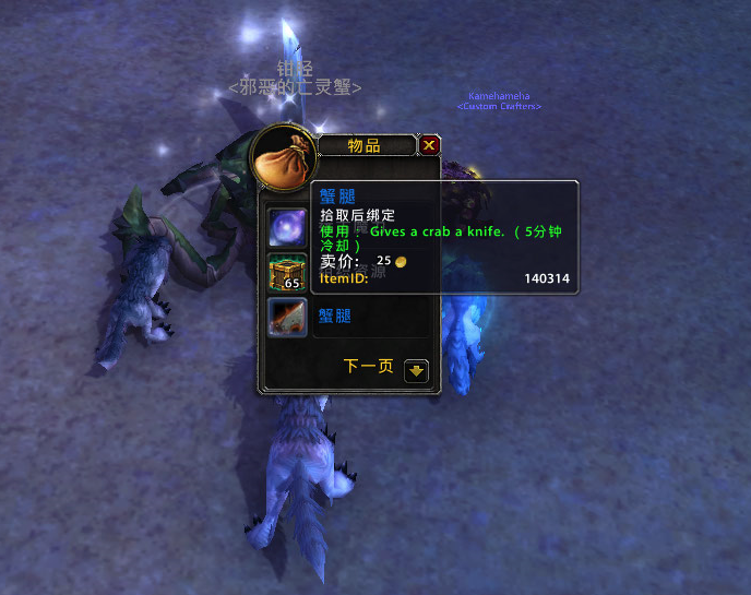 蟹腿可以对螃蟹宠物使用,效果是螃蟹会带刀~(5分钟CD,非消耗品)