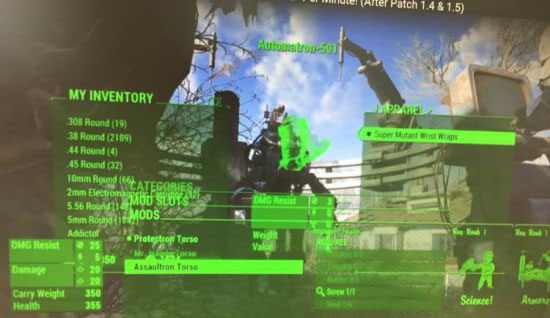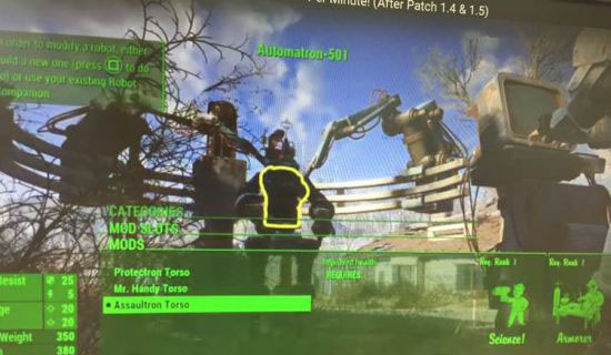 最后一步,如果你使用的是主机(我是主机所以无法建议pc玩家请自行尝试),此时切忌使用摇杆,请仅使用十字键来操作机器人界面,同伴交易背景可忽略,选择到驱赶界面,光标移到突袭者躯干,请同时狂击十字右键和x(xone貌似是a?)就是第一个attachmod键。两个键一起按,请再次确认右边显示的资源您一样都没有不然不管齐不齐都会消耗。