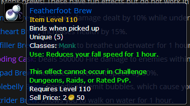 以下酒水无法在挑战副本、团队本、评级PVP中使用。