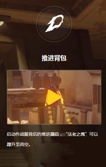法老之鹰凭借其本身的高伤害溅射火力以及可以喷气式飞行的强大特性一直是出场率较高的英雄,在大多数的露天场地都能从空中给敌人制造麻烦,不论是进攻方定点摧毁敌方的火力点还是防守方从高处进行火力压制阻碍敌人推进,法老之鹰都是很好的选择。而缺点是其不适合狭窄的室内战斗以及滞空阶段很容易成为敌方狙击手的目标。