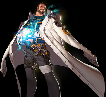 蓝拳有一个架招类技能,叫神圣反击,释放时只要正面受到攻击会立即反击,被动触发是全程霸体,而主动触发没有霸体,这个技能充分得显示了蓝拳这个职业的街机元素。因为在拳皇里有多个职业拥有类似技能,如玛丽、大门的架招以及龙二的吐舌头。