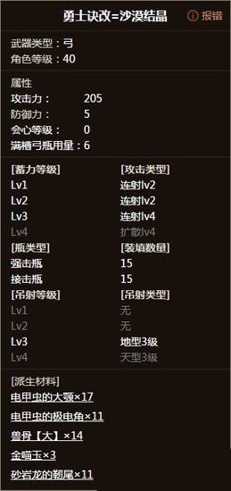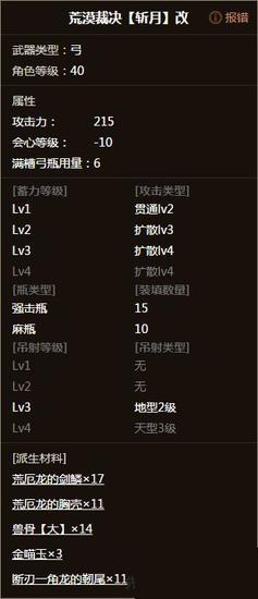 砂岩弓205会心0,轰弓213负会心13,日珥弓211负会心7,射心弓211会心0,荒漠215负会心10,唔、从面板看来荒漠裁决不错,但是别急。