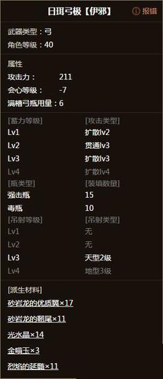 Nope,接下来是对比瓶种:砂岩弓强击15弓槽5,轰弓强击10弓槽4,日珥弓强击15毒瓶10弓槽6,射心弓强击10毒瓶15弓槽5,荒漠强击15麻瓶10弓槽6。结论是砂岩弓、日珥弓、荒漠弓四蓄吊射续航非常棒,其中日珥弓最为突出。