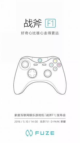 2016年5月10日下午2点,斧子科技「战斧F1」发布会将在北京751D·PARK新罐举行,届时斧子科技创始人兼CEO、蓝港互动集团董事局主席王峰将登台演讲,正式发布第一台国产家庭互联网娱乐游戏机「战斧F1」。