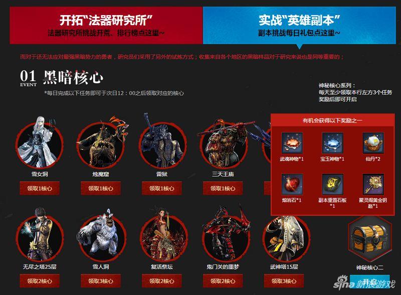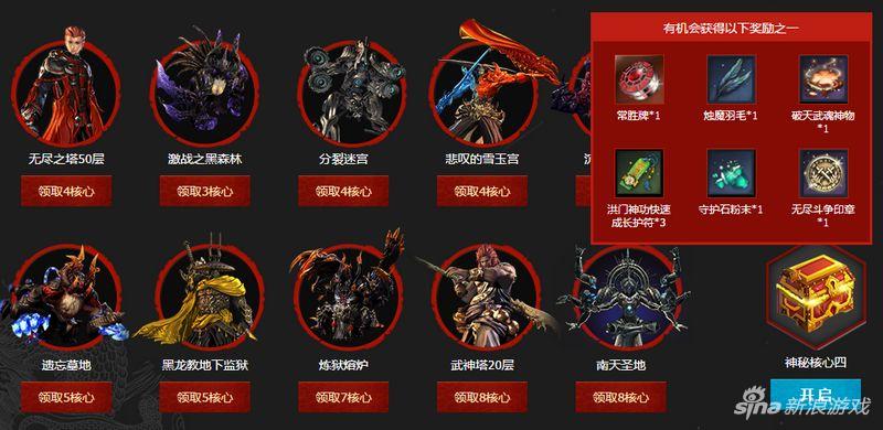 1。 每天通关对应的副本/武神塔/无尽之塔即可于次日12:00之后领取对应数量的核心;每个QQ每天仅能领取一次;