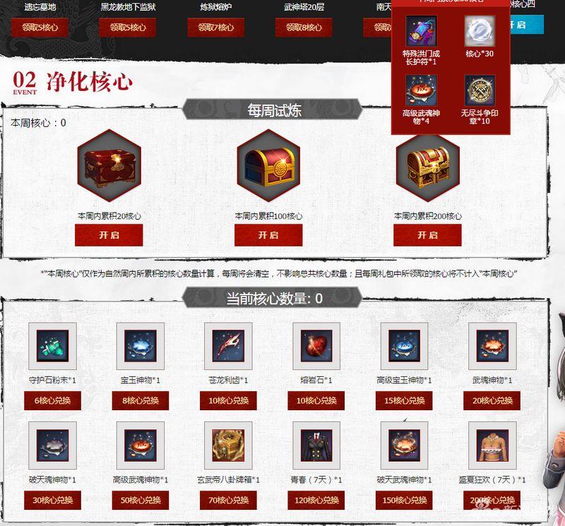 3。 每周累积达到对应数量的核心及可领取“每周试炼”中的奖励;每个奖励每个QQ每周(自然周)仅能领取一次;