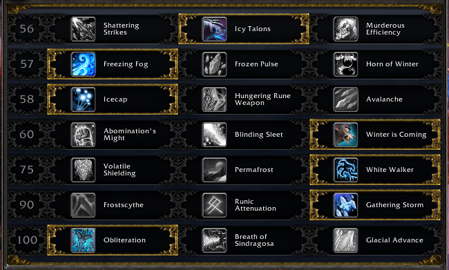 自动攻击:自动攻击触发杀戮机器(目测RPPM) 及冰剃,重要的不是伤害而是攻速。由于7.0里冰DK都不会优先堆急速,提高平砍攻速的天赋和特质就很重要了。