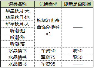 可自由选择兑换定制版“华星秋月”系列手镯或“听潮”系列项链。兑换出来时属性固定,并附加对怪物伤害属性。可重铸其属性,重铸后属性随机,消耗与普通版“华星秋月”、“听潮”系列首饰重铸消耗相同。重铸后额外的对怪物伤害属性仍然保留。