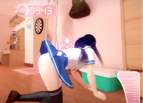 这款游戏和大朋VR一体机的适配程度比较高,因为它不同于第一人称射击游戏对握杆等物理外设的特殊要求。反而更适合一体机本身的M-touch触控操作,轻度交互,重度沉浸。在内容上,这款游戏是非常非常适合一个人玩,背景中也提到过,你的“敌人”全部都是美少女,你的战场除了卧室就是浴室。所以,美少女、卧室、你,你懂得。