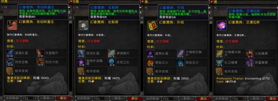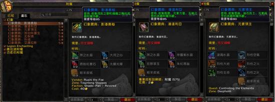 可以看到这些宝典需要的材料包含mop、ctm、wlk、tbc和经典旧世的各种材料,同样通过附魔等级要求可以看出这些宝典应 该是在7.0的前夕就可以入手,那么有心的人就可以现在开始收集这些材料了。目前来看这些宝典是可以交易的,这里面也蕴含着一些商机。总之,各位收集控又有得忙了。