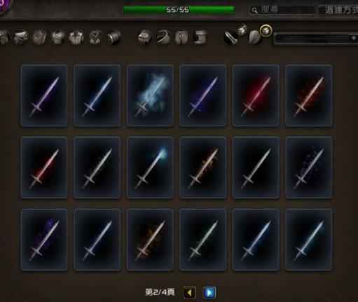 幻化2.0系统中,武器的附魔外观幻化也可以收集了,目前到21691版本一共有55个幻化外观可以收集: