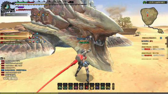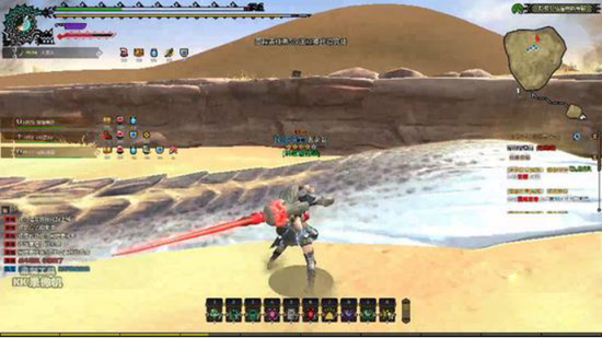 在地下一段时间后它会飞出地面,这一段飞扑是有很高伤害的,我们可以用飞扑躲开,而飞扑时机也很好把握,主要看地图上那个红点(之前丢过染色玉了)。在红点闪了之后心中默数一二,数完之后就可以飞扑了。
