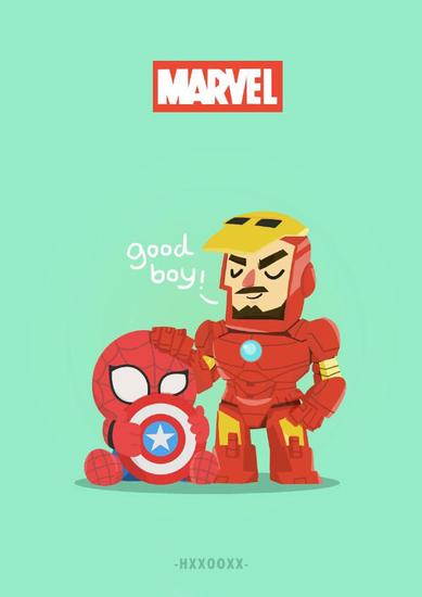 来自@HXXOOXX的设计,钢铁侠夸奖抢走美国队长盾牌的蜘蛛侠说,good boy!干得不错!
