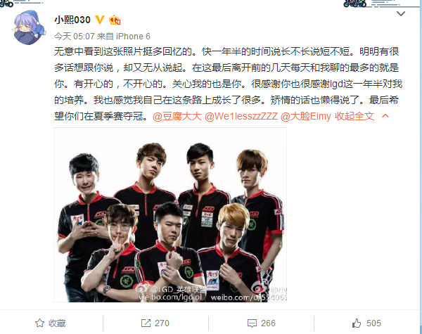 5月16日 OMG官方微博发布消息,“我们的打野选手权,与俱乐部合约到期后,为了今后更好出发,希望暂时休整。作为阿权的家人和后盾,我们尊重他的决定,OMG大家庭的大门永远为他敞开!”。淘宝权的暂时休息,让OMG战队将会遭到巨大打击。在春季赛,OMG的整体发挥非常不错,尤其是打野TBQ的重生,让人们对这支队伍产生无限遐想。TBQ在OMG不仅是节奏启动器,更多的时候还会参与到指挥全局。TBQ的暂时休息,对OMG的影响非常大,OMG需要重新找一名打野,再次经历一番磨合了。