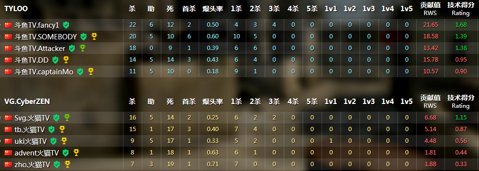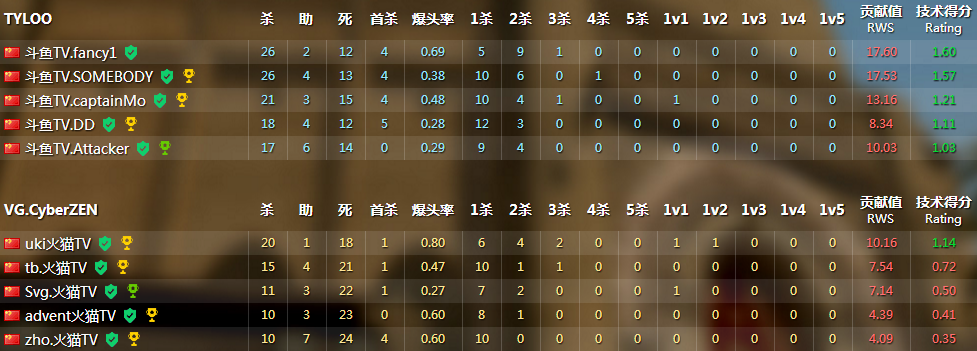 随后两张的地图真实的反映了TyLoo的飞速进步(de_dust2 16-4,de_cache 16-2),从之前的两队势均力敌,到如今的TyLoo多次在各项比赛中均战胜老对手VG.CyberZen,再到今日的最后两张地图相加失分不超过十分,这期间TyLoo的进步是大家所有人都有目共睹的。自从TyLoo从马尔默征战归来之后,一路高歌猛进,多次巩固TyLoo在亚洲CSGO战队的领头位置。