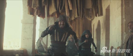 接下来,预告片集中表现了另一个刺客信条系列中广受喜爱的特色:在中世纪城市建筑之间的自由跳跃动作(或者说跑酷动作)。简单来说,没有这个就不能称之为刺客信条电影,而且这段场景里表现出来的跑酷动作非常让人着迷。