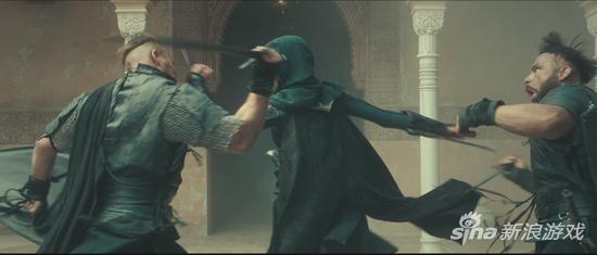 接下来几个袖剑战斗的场景很棒。和游戏里一样,这些动作优雅却又致命,在镜头里表现出无与伦比的舞动美感。