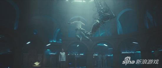 接下来我们终于看到了电影里的新款Animus到底是什么样了,它通过一个巨大的机械臂让受试对象模拟还原祖先的具体动作。当林奇进入过去的记忆时,他就可以通过自己的身体来操作这台机器。
