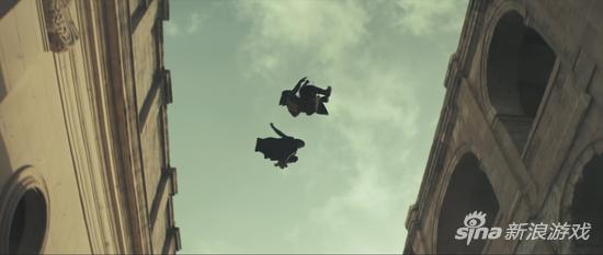 预告片可不会少了信仰之跃的场景,这个标志性的动作中,刺客从极高之处翻跃跳下并安全落地。预告片中的这个场景非常之棒!