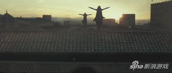 场景回到15世纪的阿奎拉,他和玛利亚一起在走道中奔跑躲避后方追捕的士兵。随后他们在屋顶间做了一个同步的翻跃。