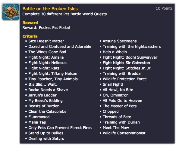战斗在破碎群岛:在破碎群岛完成30场不同的宠物对战世界事件,奖励为口袋宠物传送门。