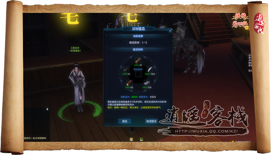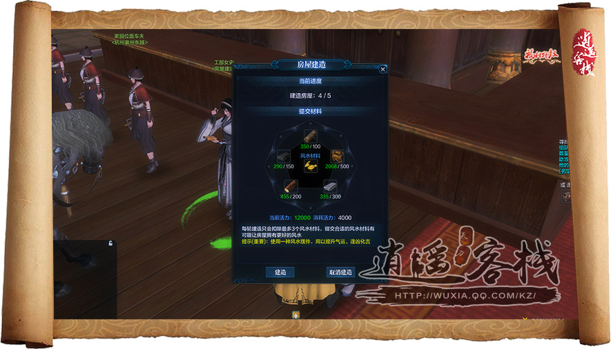 第四轮建造消耗材料:50个杉木、70个板岩、100个松木、140个砂岩、500丝绸,活力消耗:4000点