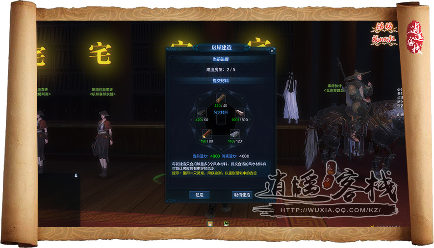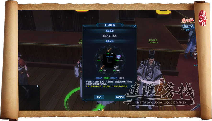 第三轮建造消耗材料:40个杉木、60个板岩、80个松木、120个砂岩、500赤金,活力消耗:4000点