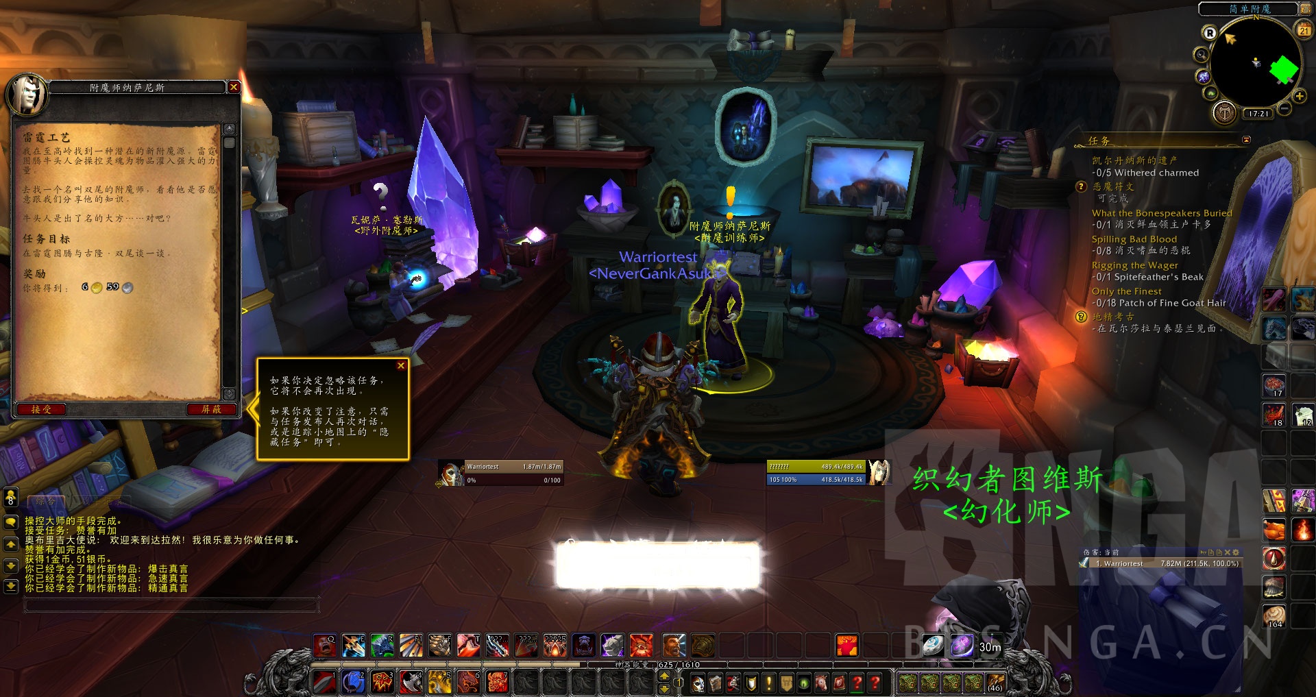 纳萨尼斯告诉我,前线恶魔猎手战事吃紧,继续我附魔大师的支援。