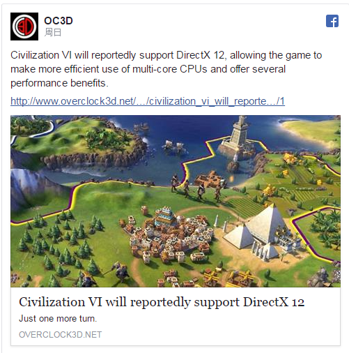 据悉,本作将支持DirectX 12技术,让游戏的运行效率进一步增强,此前已经有新闻报道《文明6》将使用全新引擎制作,因此在新引擎下,支持DirectX 12技术也是理所应当,通过异步计算,DirectX 12对于多核心CPU以及发挥显卡效能有着巨大的推进作用。《文明6》同样也支持DX11,这对于不同配置,不同操作系统的玩家来说也是一个不错的消息。