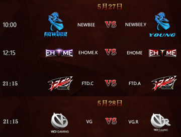 5月27日DPL将迎接3场豪门内战。分别是早上10点Newbee vs Newbee.y,中午12点15分Ehome.k vs Ehome,晚上21点15分FTD.C vs FTD.A。同一天之内相继进行三场内战相信观众们已经翘首以待了吧,那么5月28日晚21点15分上演的VG俱乐部同门内战VG.R vs VG将会为本周的疯狂内战画上一个完美的句号。究竟哪支队伍将稳拿2分,哪只队伍将爆冷获胜,哪场比赛将握手言和,让我们拭目以待。