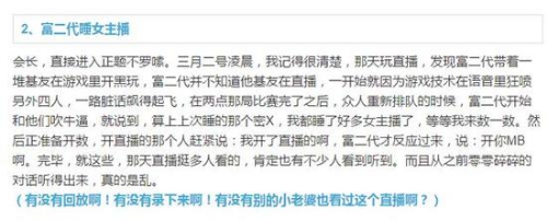 新浪微博里有一个名为@关爱八卦成长协会 这个人,大部分的微博内容自然是与娱乐圈的八卦有关,最近他的微博接到一位网友爆料,说是某个着名富二代在和好友在线连麦的时大谈睡过多少女主播,期间好像说了些含糊其辞的话,可没曾想这好友是在直播,于是语音就流传了出来。