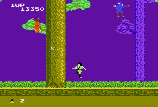 按说这才是最早把轻功炒出来的游戏吧!你扮演一个忍者在树林间潇洒的飞来飞去,可以使刀和飞镖,关卡是循环的,小时候根本不知道结局。