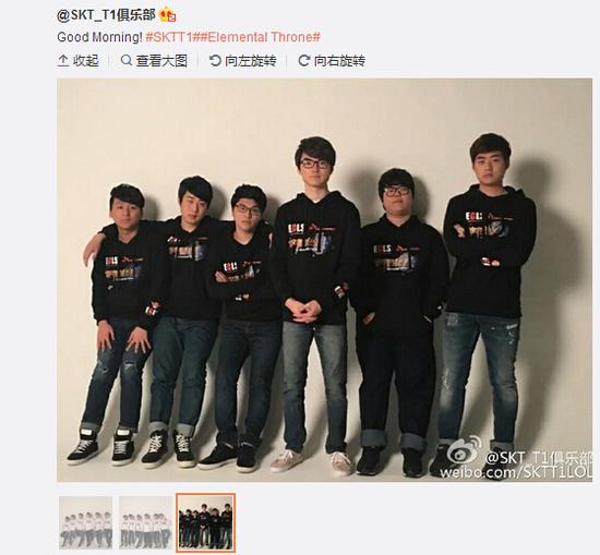 LCK夏季赛开赛日期日益临近,SKT战队今天在官方微博公布了几张战队成员的合照。照片中大家穿着整齐划一,很像是夏季赛新版队服,但是关于俱乐部“SKT”的Logo又实在不明显,因此也有人评论称这只是SKT为厂商代言广告的宣传照。