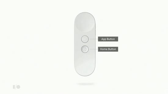 和Vive控制器类似,有触控板和菜单按钮可以和各种Daydream app进行交互。底部的Home键可以回到Daydream Home菜单并重置头部定位。侧边有音量控制键。